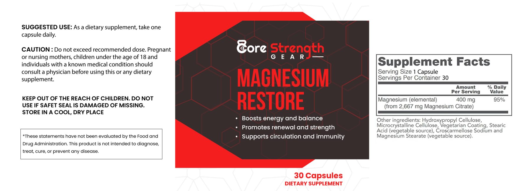 FDA Disclaimer: This product is not for use by or sale to persons under the age of 18. This product should be used only as directed on the label. It should not be used if you are pregnant or nursing. Consult with a physician before use if you have a serious medical condition or use prescription medications. A Doctor's advice should be sought before using this and any supplemental dietary product. All trademarks and copyrights are the property of their respective owners and are not affiliated with nor do they endorse Core Strength Gear . These statements have not been evaluated by the FDA. This product is not intended to diagnose, treat, cure or prevent any disease. Individual weight management results will vary. By using this site you agree to follow the Privacy Policy and all Terms & Conditions printed on this site. Void Where Prohibited By Law.